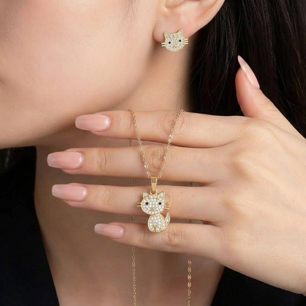 Lucky Cat Earrings with Free Necklace | Limited Offer