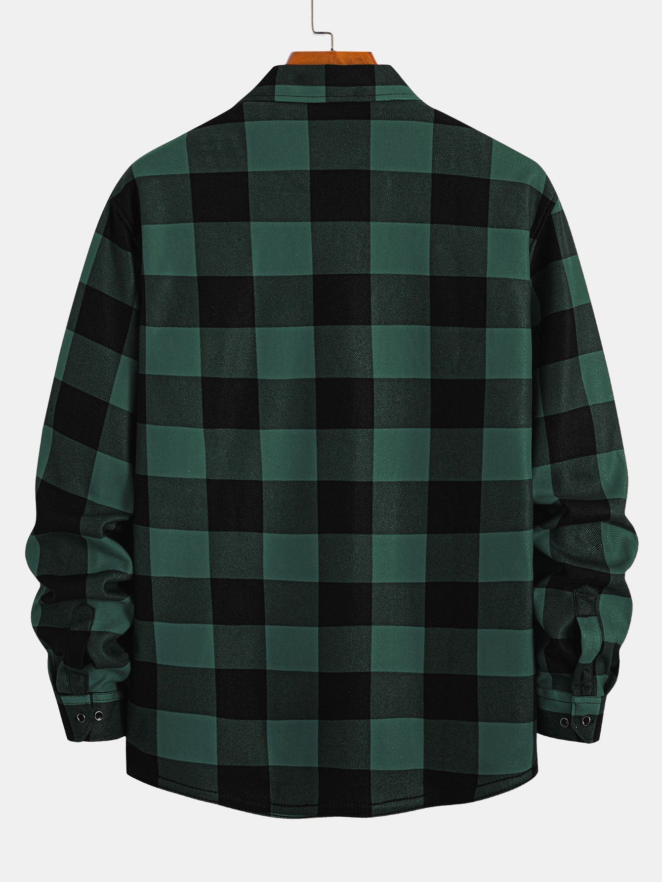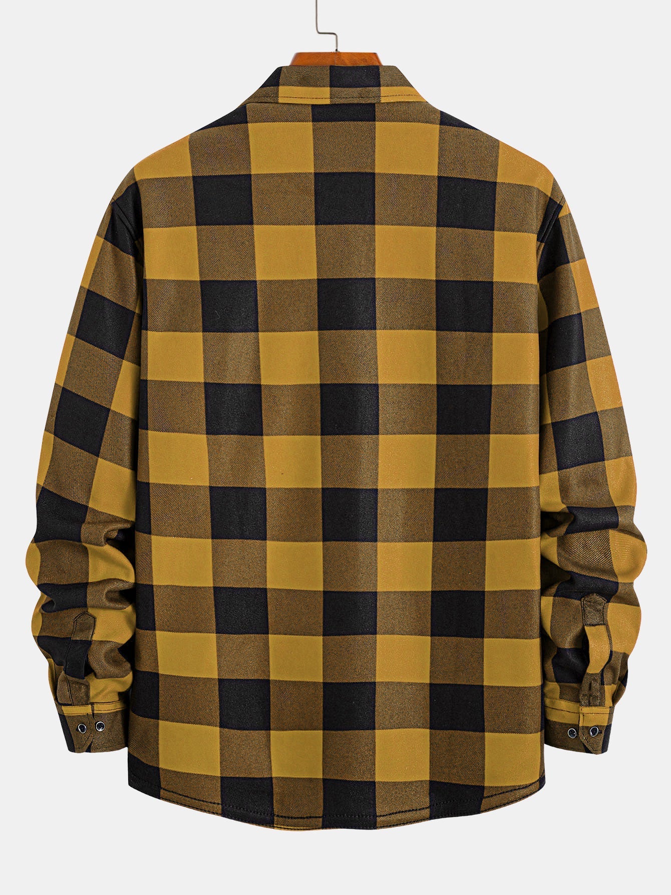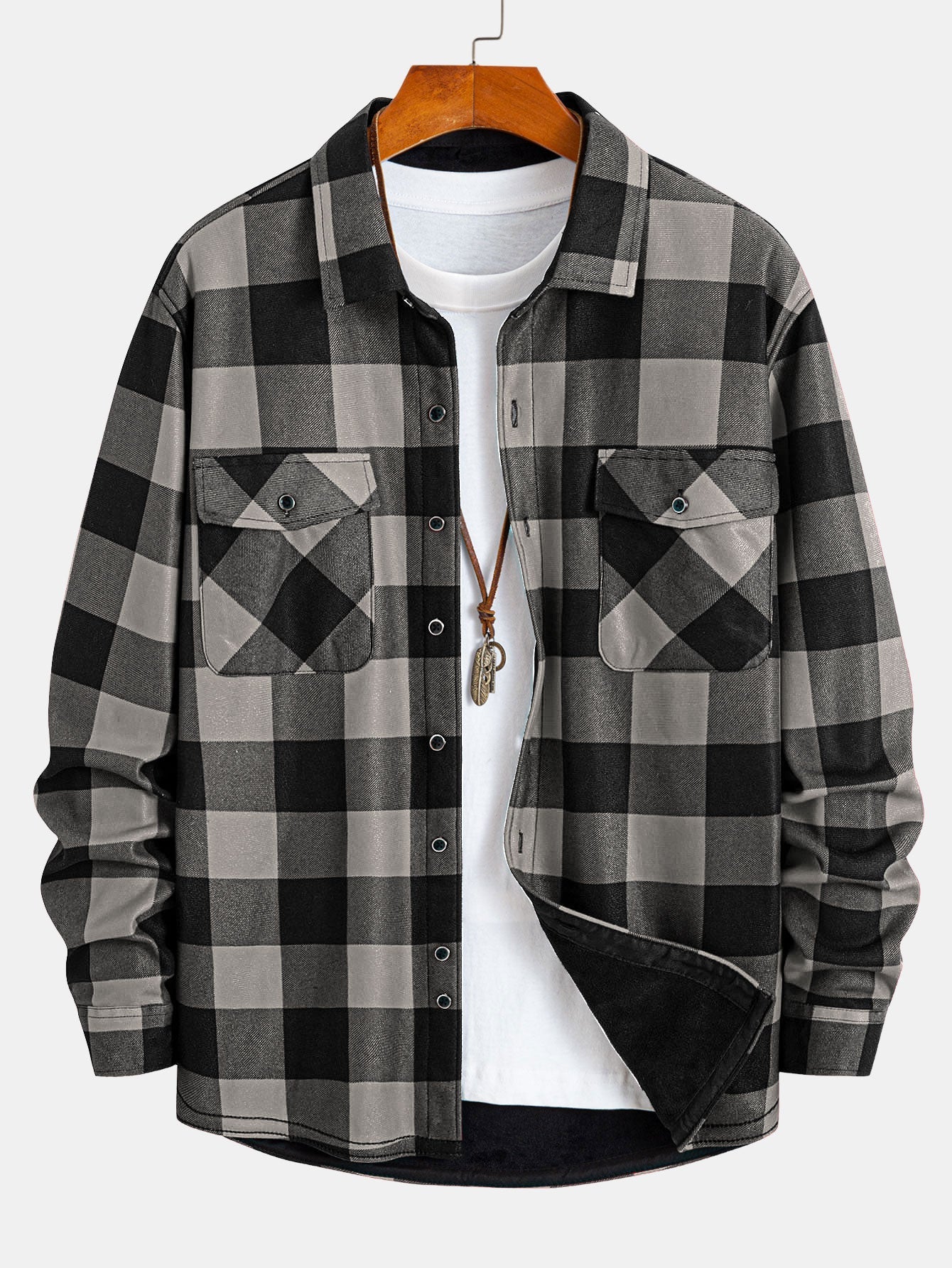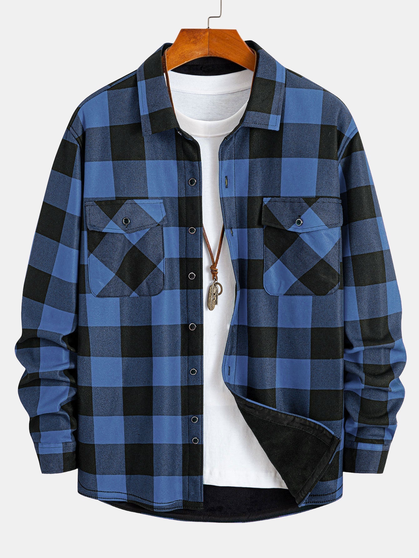 Flannel Fleece Lined Plaid Shirt With Pockets