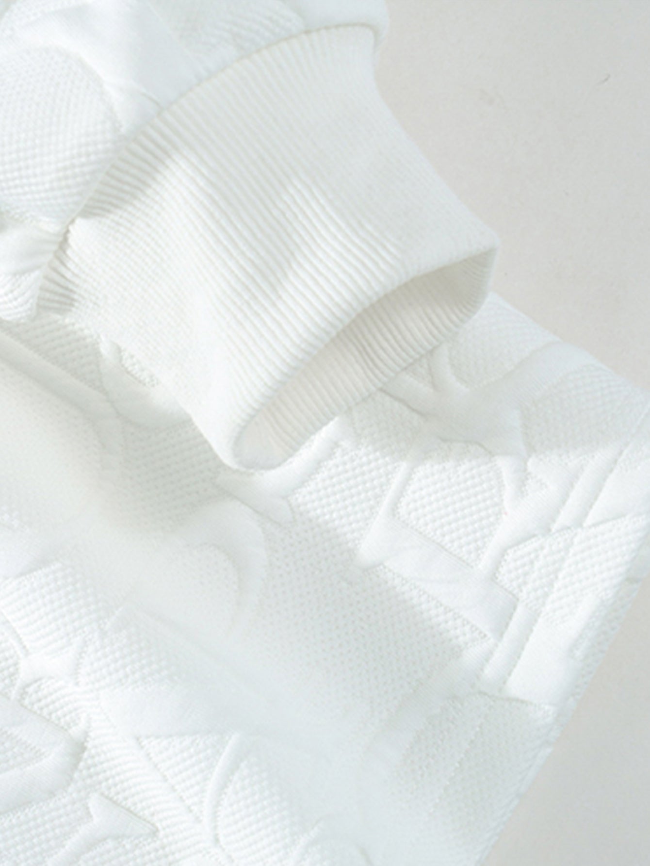 Designed with a stylish V-neckline and eye-catching jacquard lettering, this sweatshirt combines modern fashion with everyday comfort. Perfect for layering or wearing on its own, it’s a versatile piece that adds a chic touch to any outfit.