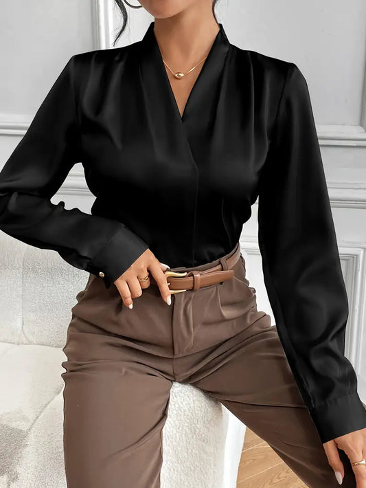 Jess™ | Elegant Black Satin Long Sleeves Blouse